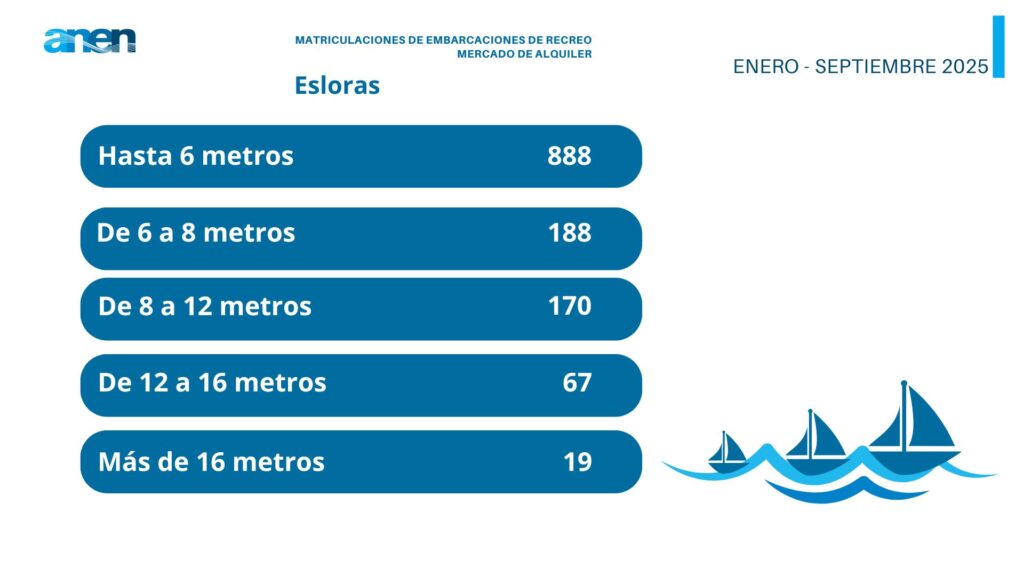 Son los datos que revela el Informe del mercado de embarcaciones de recreo enero-septiembre 2025, elaborado por ANEN a partir de los registros de la Dirección General de la Marina Mercante.