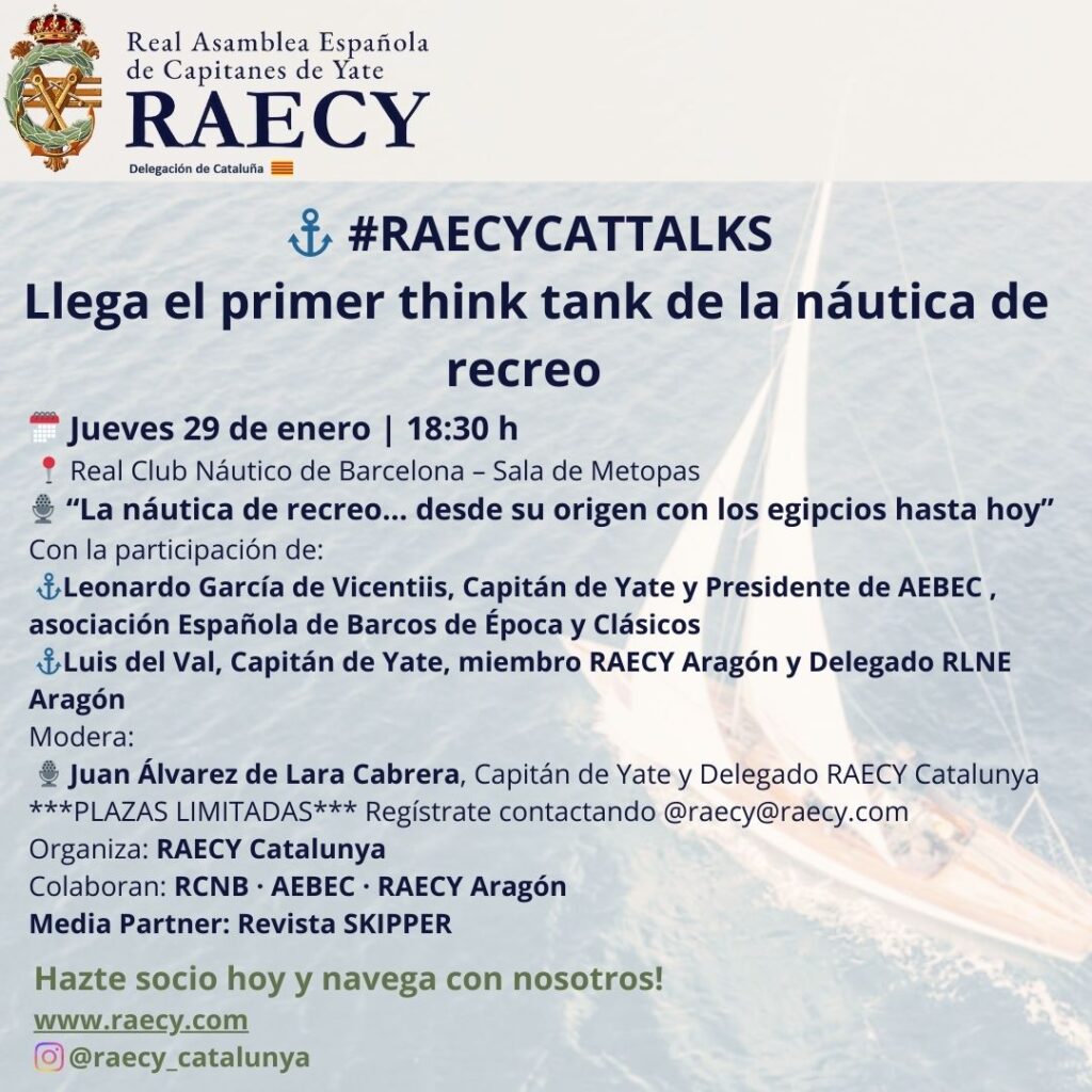 Barcelona acogerá el próximo jueves 29 de enero el primer encuentro de #RAECYCATTALKS, una nueva iniciativa impulsada por el Capitán Juan Álvarez de Lara, delegado de la Real Asamblea Española de Capitanes de Yate (RAECY) en Catalunya, que nace como el primer think tank de la comunidad náutica de recreo. El proyecto se presenta como un espacio de reflexión, conocimiento y diálogo destinado a analizar y promover el presente y el futuro del sector.